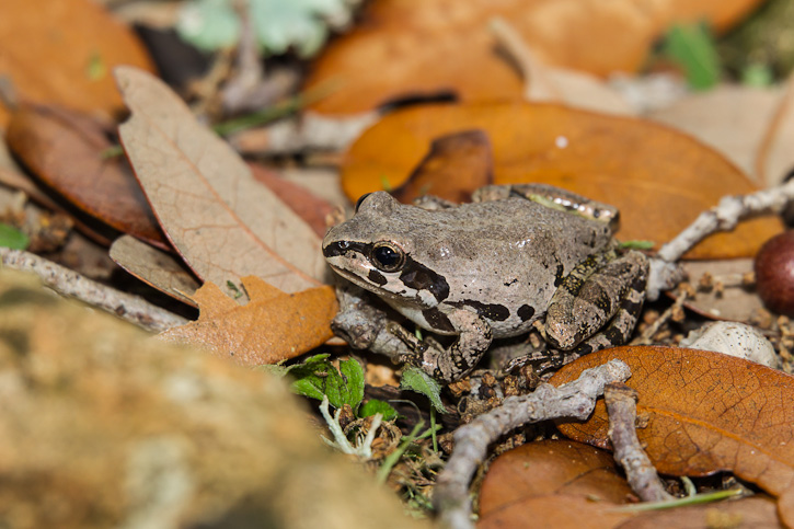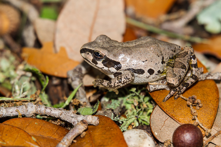 The Strecker's Chorus Frog (Pseudacris streckeri) is a species of nocturnal tree frog native to the south central United States, from southern Kansas, through Oklahoma and east to Arkansas, the northwestern tip of Louisiana and south throughouth much of Texas. The first seven images on this page show an individual which was found in a partially wooded yard after a rain, in Dripping Springs, Hays Co., Texas, in May, 2012.
