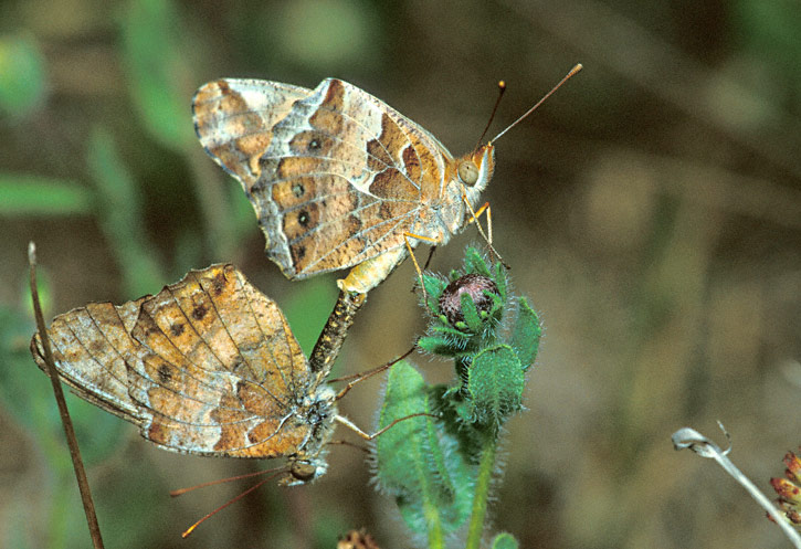 | The underwings of the Variegated Fritillary are quite different from the upper wings. This pair in copula was photographed in April, 2000, in Kenedy Co., Texas with a Canon EOS 3 and an EF 180mm F/3.5 Macro and Fuji Sensia 100 film. |