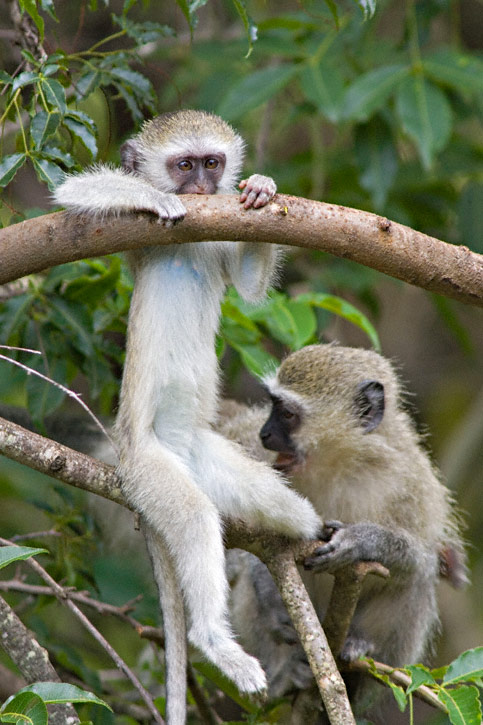 | The Vervet Monkey (Cercopithecus aethiops) is fairly common and widespread over much of southern Africa. The first four shots here show adults and a youngster at the Satara Camp in Kruger National Park, Mpumalanga Province, South Africa, in January, 2006. The bottom shot, of an adult and a youngster, was taken in the Blyde River Canyon, in the same province of South Africa. The images were shot with a Canon EOS 1D Mark II and EF 70-200mm F/2.8 L IS lens and 2X extender. | ![]() |