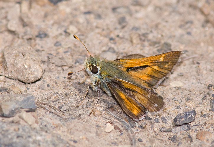 | The Western Branded Skipper (Hesperia colorado) is a variable member of a larger group of skippers known as the "Branded Skipper Complex". Sometimes this species may be simply referred to as Common Branded Skipper. The Western Branded Skipper occurs across much of the western United States at many elevations. The first 2 shots on this page were taken at Boreas Pass above Breckenridge, Summit Co., Colorado, in July, 2008, at about 12,000 feet elevation. These shots were taken with a Canon EOS 1D Mark III and EF 300mm F/4 L IS lens and 2X extender and Canon 580 flash. | ![]() |