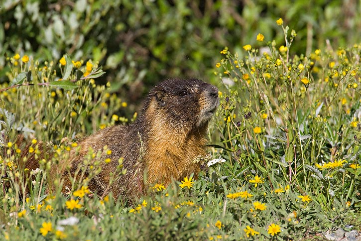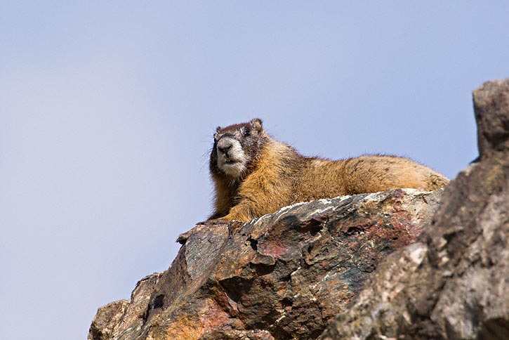 | The Yellow-bellied Marmots in the following 9 shots were near Blue Lakes, Summit Co., Colorado, in July, 2008. These shots were taken with a Canon EOS 1D Mark III and EF 500mm F/4 L IS lens. |
