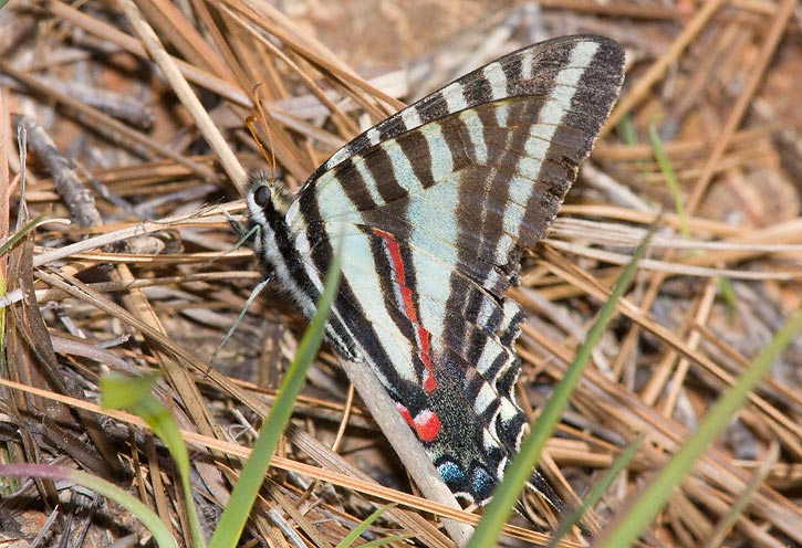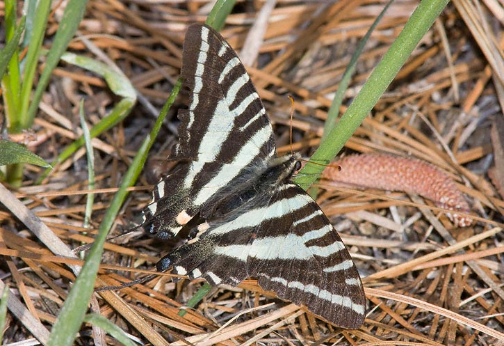 | The Zebra Swallowtail (Eurytides marcellus) is a butterfly of the eastern United States. It ranges west into east Texas, which is where the first 3 shots were taken. These first 3 images were taken in Jasper Co., Texas, in March, 2008, with a Canon EOS 40D and an EF 300mm F/4 L IS lens and 2X extender. | ![]() |