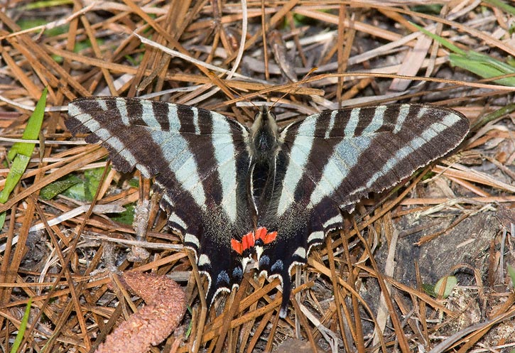 | The next 7 images of Zebra Swallowtail were taken in Angelina Co., Texas, in March, 2010, with a Canon EOS 1D Mark IV and an EF 300mm F/4 L IS lens and 2X extender and 580 flash. | ![]() |
