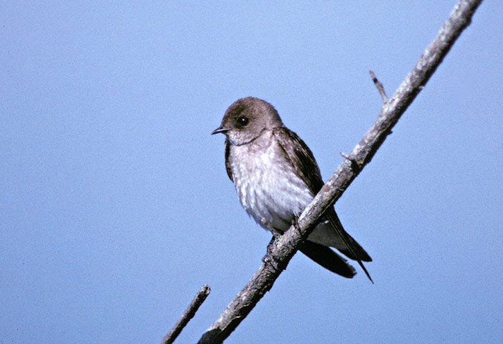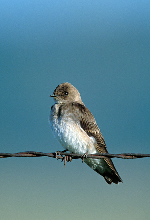 | The Northern Rough-winged Swallow shown here was at Fort Niobrara N.W.R., Cherry Co., Nebraska, in June, 2001. This shot was taken with a Canon EOS 3 and EF 500mm F/4 L IS lens and 1.4X extender on Fuji Provia film. |