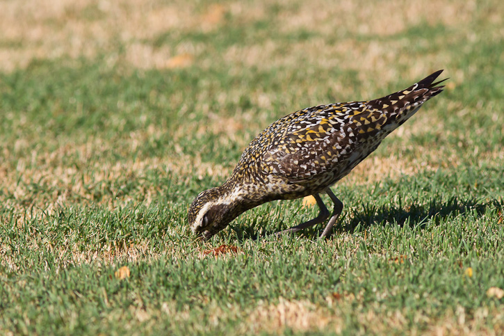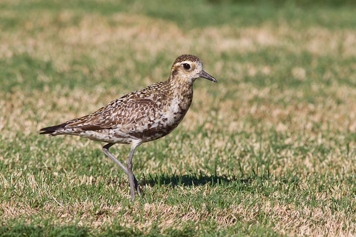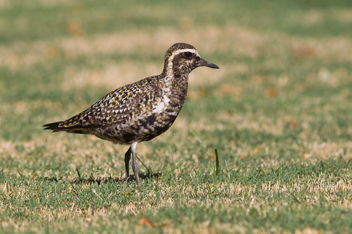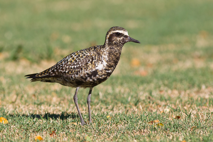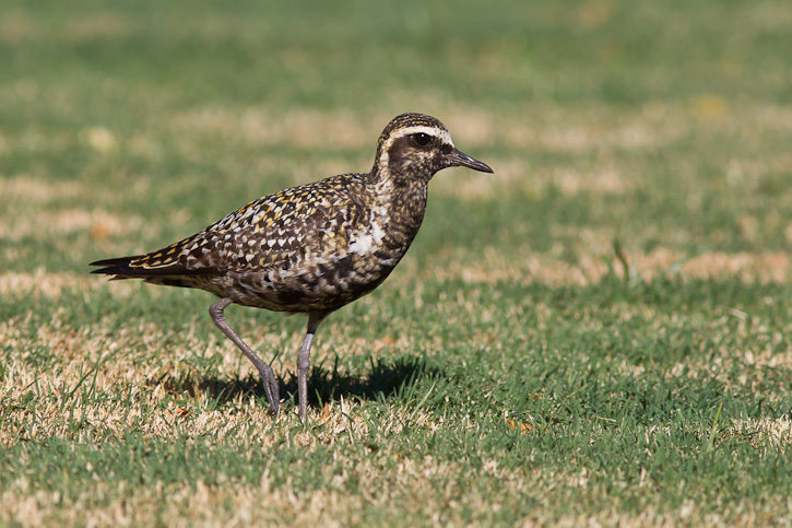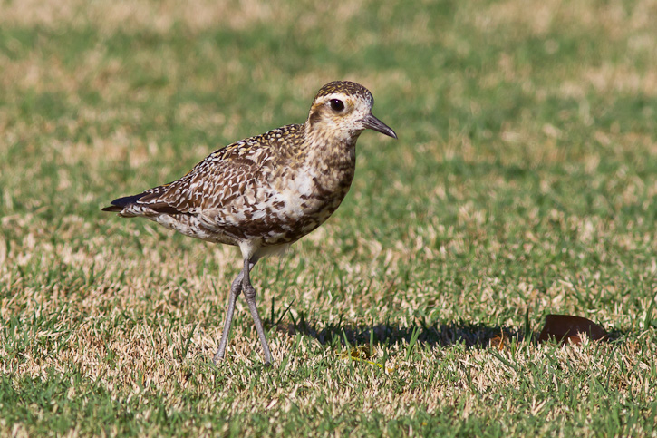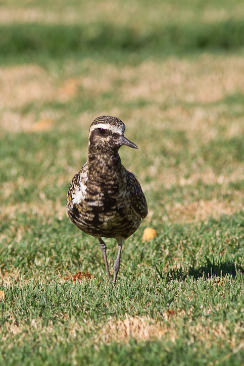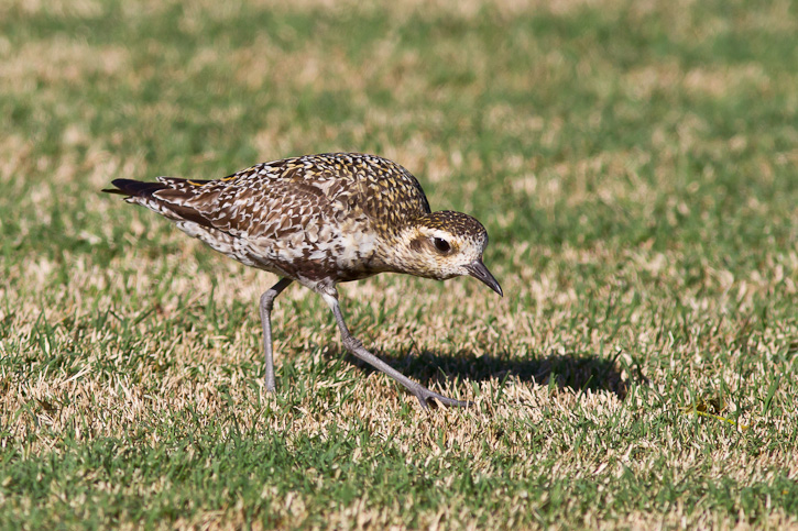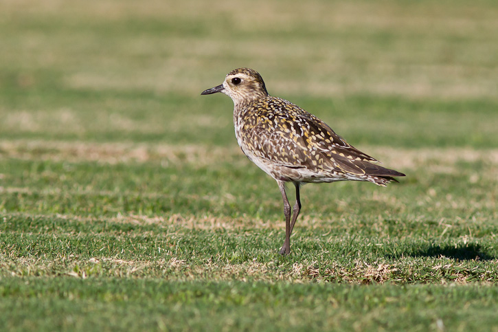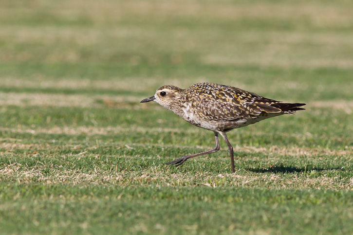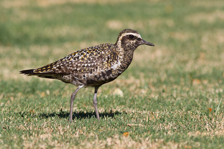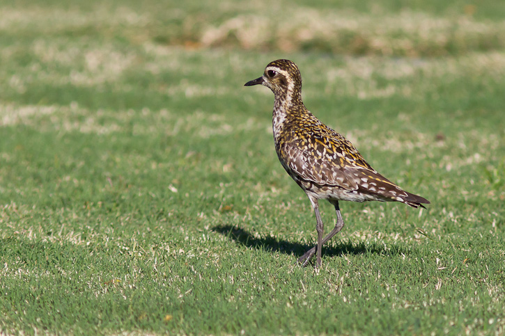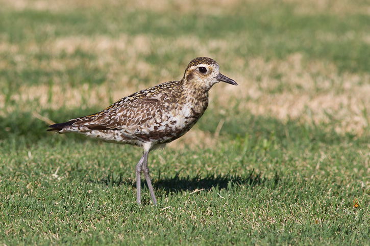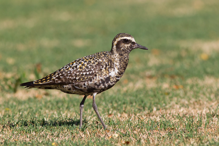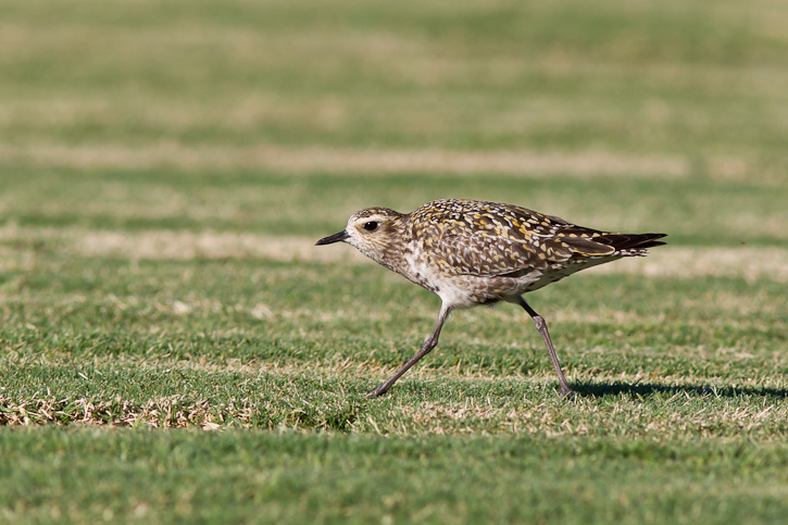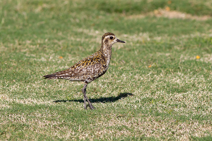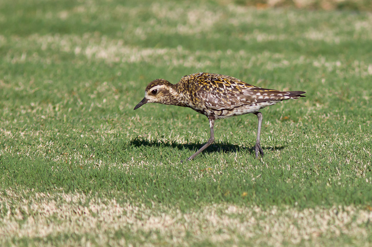 | The Pacific Golden-Plover (Pluvialis fulva) breeds in parts of Alaska and Siberia and winters in Hawaii, among other places). The first 21 images on this page show birds that have just arrived on the Hawaii wintering grounds, in August, 2012. All these shots were taken at the National Cemetery of the Pacific at Honolulu, Oahu, Hawaii, with a Canon EOS 1D Mark IV and an EF 300mm F/4 L IS lens and 1.4X extender. | ![]() |