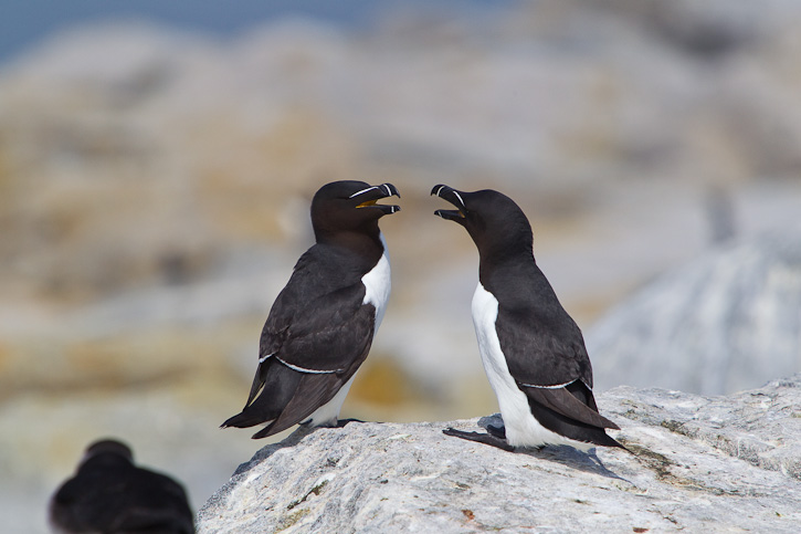 | The Razorbill (Alca torda) is a nesting bird of the extreme northeastern U.S. along the Maine coast in a few areas. The bird also nests on the far eastern Canada coast, as well as Greenland and Iceland. The first 12 images on this page were taken at Machias Seal Island, Washington Co., Maine, in June, 2010. | ![]() |
