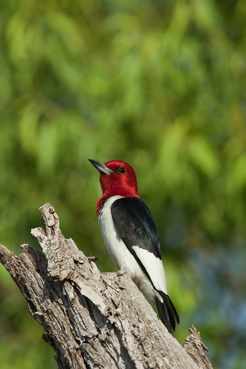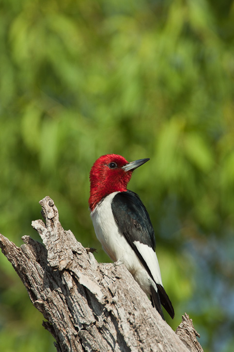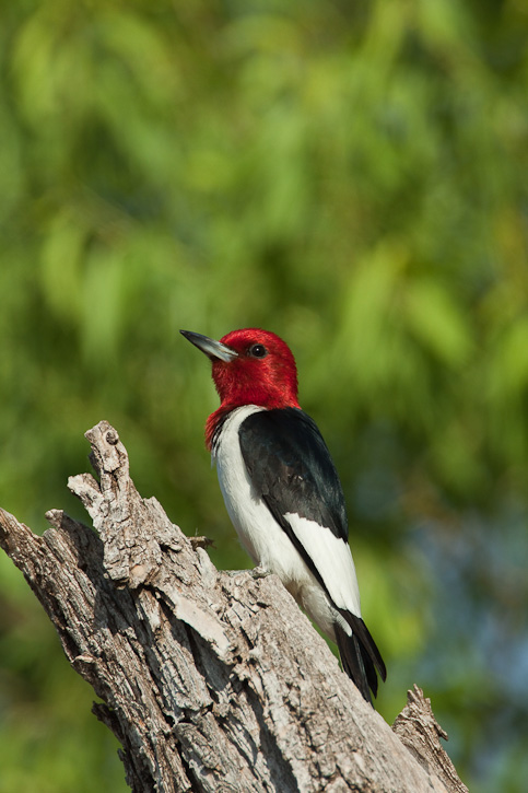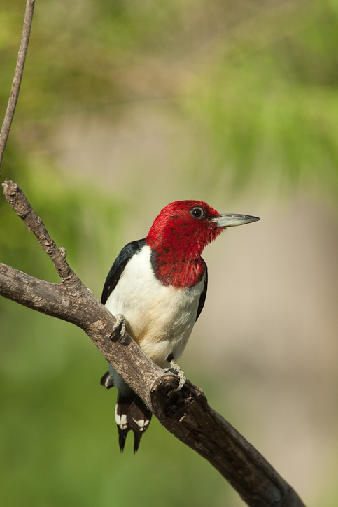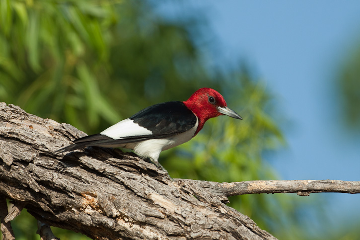 | The Red-headed Woodpecker (Melanerpes erythrocephalus) is a widespread and familiar species across much of the eastern two-thirds of the United States. Males and females are alike in plumage. The first 12 images on this page were taken in the Texas Panhandle in Hansford Co., in July, 2009, with a Canon EOS 50D and an EF 500mm F/4 L IS lens. I have always thought that this species is our most beautiful woodpecker. | ![]() |