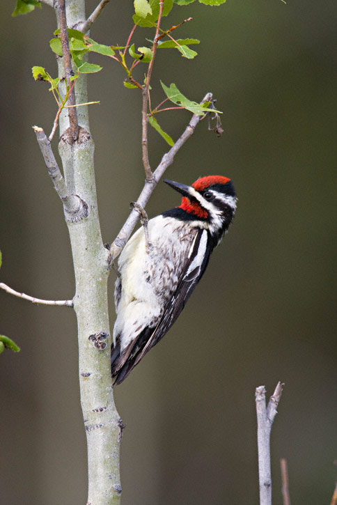 | The next two shots of Red-naped Sapsucker, show a male at Red Rock Pass, Targhee National Forest, Fremont Co., Idaho, in June, 2007. These images were taken with a Canon EOS 1D Mark III and EF 600mm F/4 L IS lens and 2X extender. |