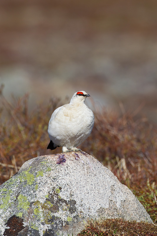 | The Rock Ptarmigan (Lagopus muta) is a northern grouse that ranges across northern Canada and much of Alaska. As the common name implies, it is often found on high rocky slopes and tundra regions. The images on this page, of winter plumage birds moulting toward summer plumage, were all taken near Nome, Alaska, in May and June 2012. | ![]() |