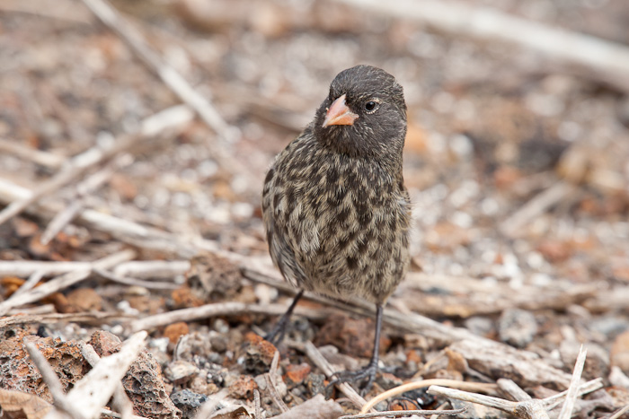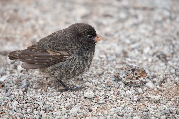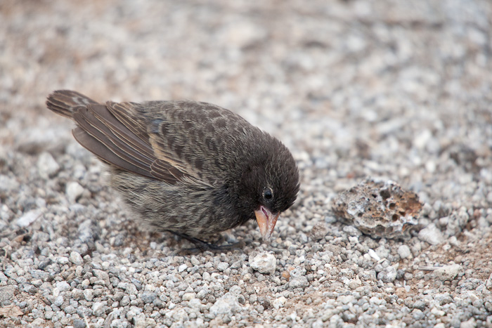 The Sharp-beaked Ground-Finch (Geospiza difficilis) only occurs on a few of the Galapagos Islands. The first four shots on this page were taken on Tower Island in August, 2010, with a Canon EOS 1D Mark IV and a Sigma 50-500mm lens. Darwin's finches (also known as the Galápagos Finches or as Geospizinae) are a group of 15 species of Passerine birds, now placed in the tanager family rather than the true finch family. They were first collected by Charles Darwin on the Galápagos Islands during the second voyage of the Beagle. Thirteen are found on the Galápagos Islands and one on Cocos Island. The birds are all about the same size (10–20 cm). The most important differences between species are in the size and shape of their beaks, and the beaks are highly adapted to different food sources. |
