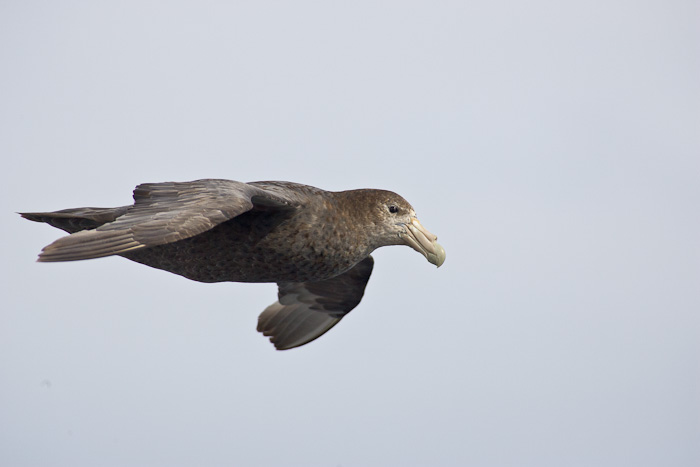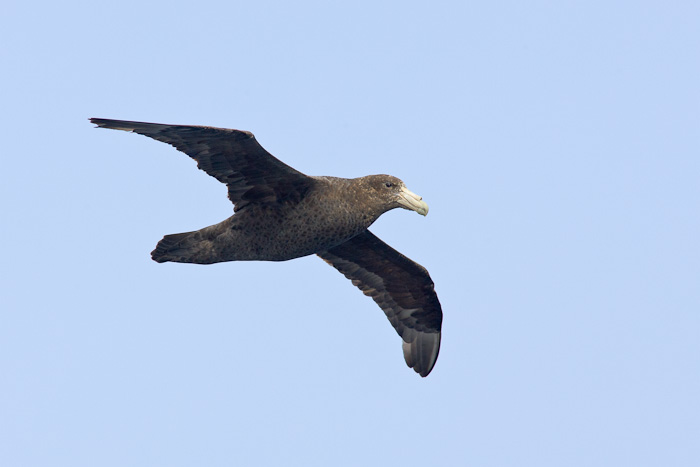 | The Antarctic Giant-Petrel here and the image following were photographed in February, 2005, off the Antarctic Peninsula with a Canon EOS 1D Mark II and EF 70-200 F/2.8 L IS lens and 2X extender. |