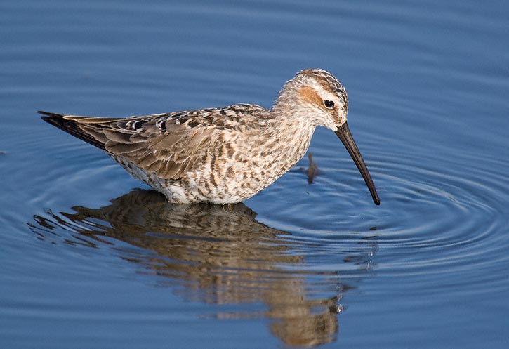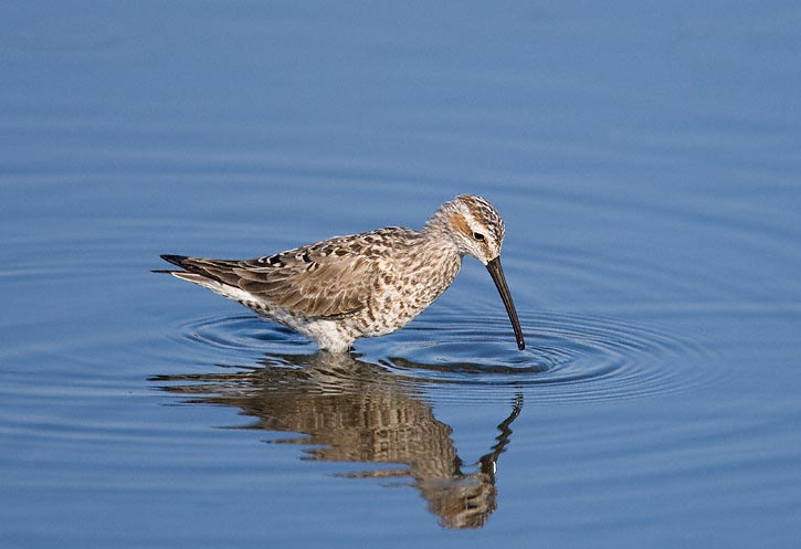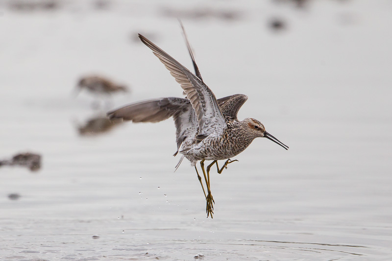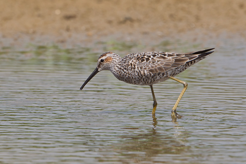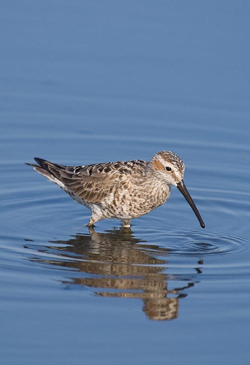 | The Stilt Sandpiper (Calidris himantopus) breeds in the high arctic tundra and winters along the coast of the Gulf of Mexico and much of Central America. The first 3 shots on this page were taken of a spring migrant in Austin, Travis Co., Texas, in May, 2008. These images were taken with a Canon EOS 1D Mark III and EF 600mm F/4 L IS lens and 1.4X extender. | ![]() |