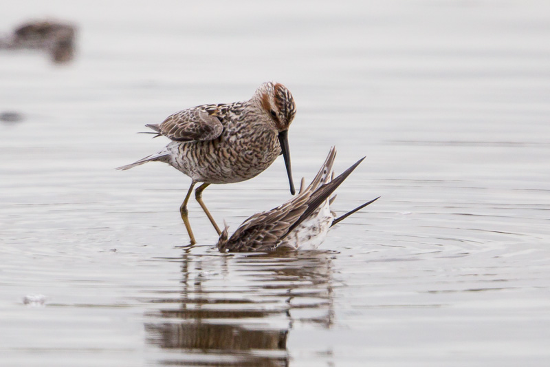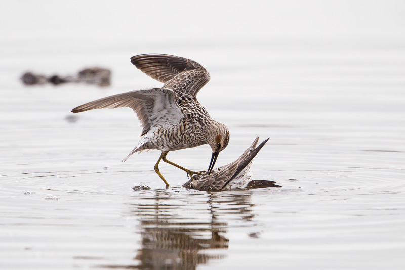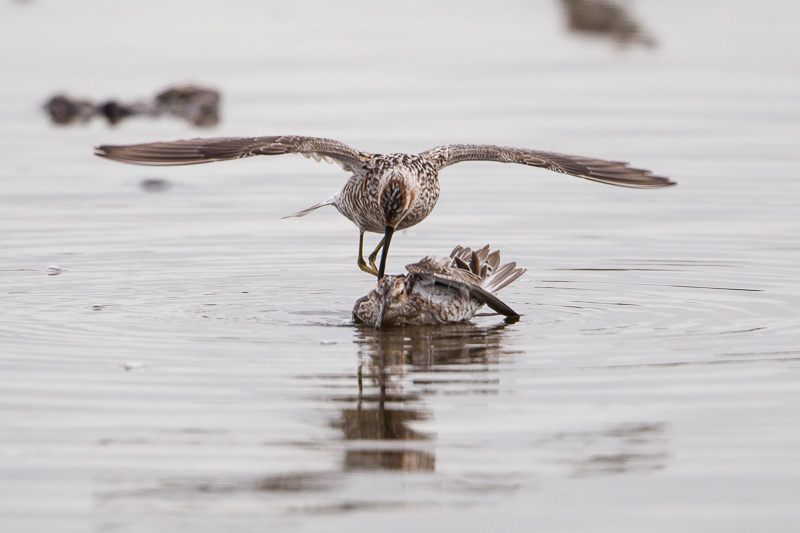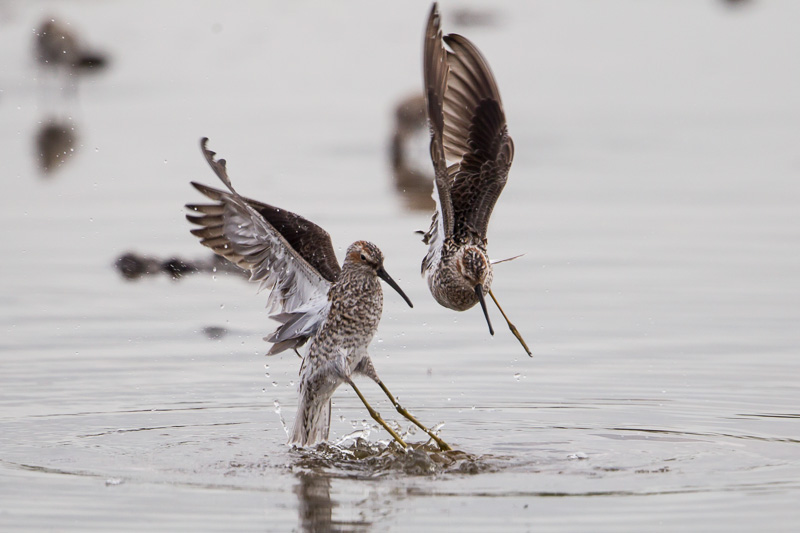 | Stilt Sandpiper Calidris himantopus battle between two birds High Island, Galveston Co., Texas 21 May 2013 |