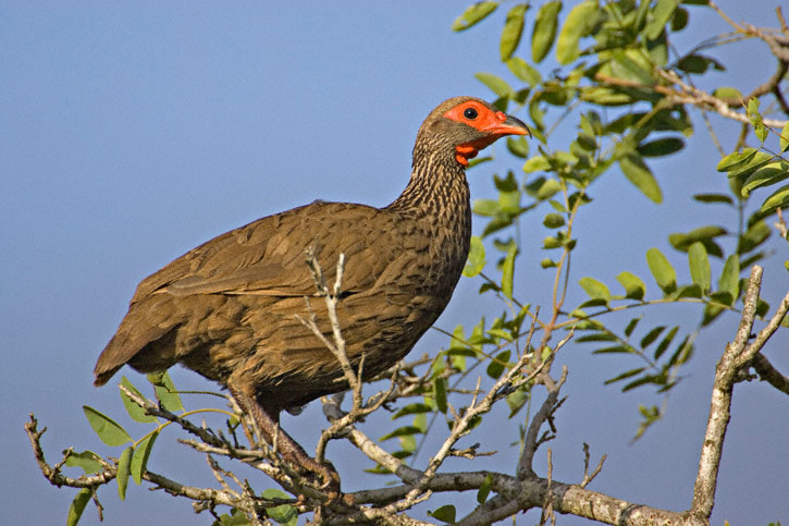 | The Swainson's Francolin (Pternistes swainsonii) is also called Swainson's Spurfowl (Francolinus swainsonii) by some authors. The species ranges across south and central Africa in woodlands, brushlands and farmlands. It has been widely introduced in many other areas. The one shown here was in Kruger National Park, South Africa, in January, 2006. The shots were taken with a Canon EOS 1D Mark II & EF 500mm F/4L IS lens and 1.4X extender. | ![]() |