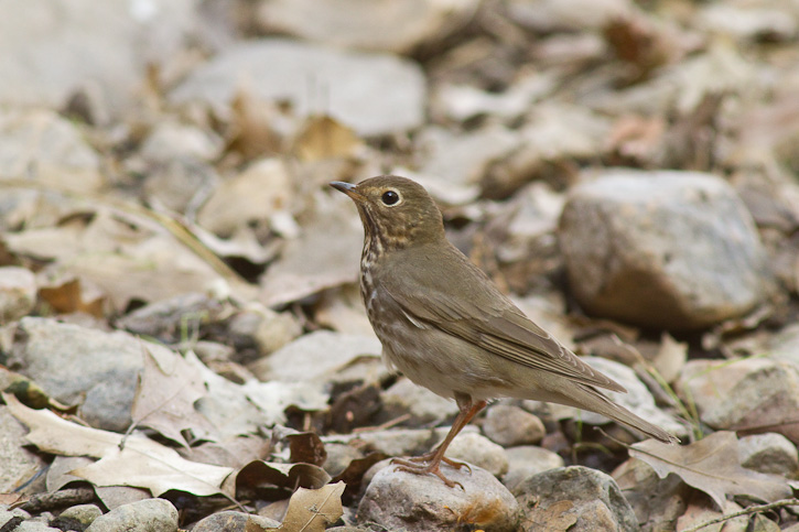 | The Swainson's Thrush (Catharus ustulatus) nests across parts on the montane west as well as much of Canada. It is a common migrant in other areas. The first 2 shots on this page show a Swainson's Thrush in Big Bend National Park, Brewster Co., Texas, in May, 2010. These shots were taken with a Canon EOS 1D Mark IV and EF 300mm F/4 L IS and Canon 580 flash. | ![]() |