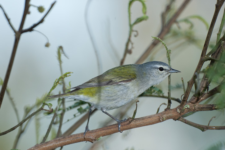| The Tennessee Warbler (Vermivora peregrina) is a species which nests mainly in the boreal forests of Canada. They winter in Central America, the Caribbean as well as northern South America. The first 3 shots on this page show a spring migrant Tennessee Warbler at South Padre Island, Cameron Co., Texas, in April, 2009. These 3 shots were taken with a Canon EOS 1D Mark III and EF 800mm F/5.6 L IS lens. | ![]() |