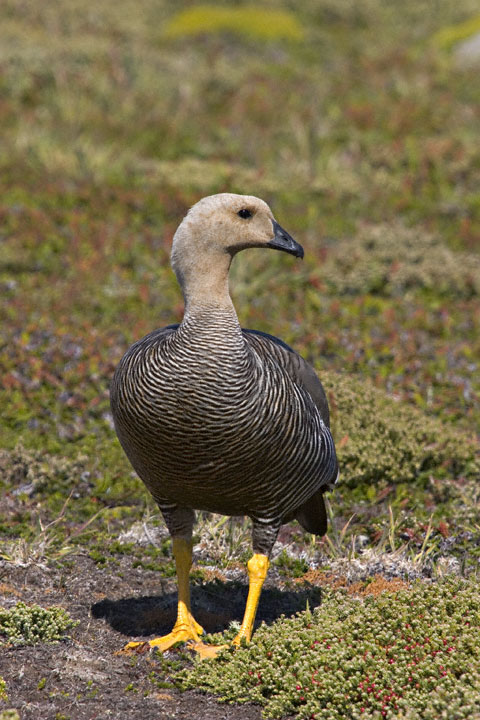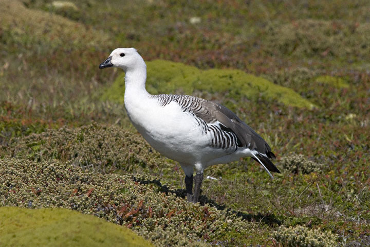 | The Upland Goose (Chloephaga picta) is a goose of southern South America and the Falkland Islands. It is very common in the Tierra del Fuego area and on many of the Falkland Islands, actually regarded as a nuisance in some areas. The males are white and the females brown. The shots here were taken in January, 2004, on West Point Island in the Falklands with a Canon EOS 10D and EF 70-200mm F/2.8 L IS lens and 1.4X extender. | ![]() |