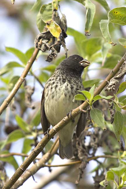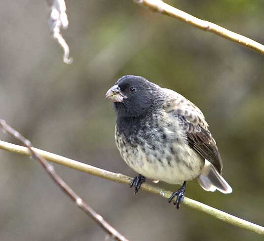 | The Vegetarian Finch (Camarhynchus crassirostris) is one of the "Darwin Finches" endemic to the Galapagos Islands. The shots on this page were digital captures taken in July 2003 on Santa Cruz Island with a Canon EOS 10D and an EF 70-200 mm F/2.8 L IS lens and 2X extender. | ![]() |