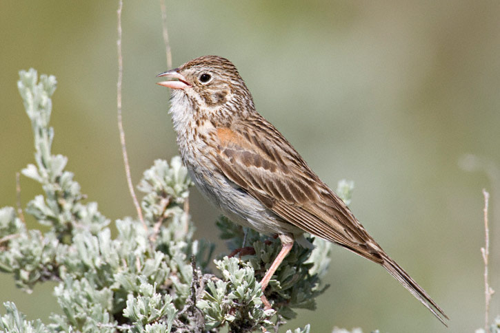 | The Vesper Sparrow shown here, as well as the 7 more shots at right that one, were all photographed in upper Crouse Canyon, Uintah Co., Utah, in June, 2007, with a Canon EOS 1D Mark III and EF 600mm F/4 L IS lens and a 1.4 or 2X extender, depending on the shot. | ![]() |