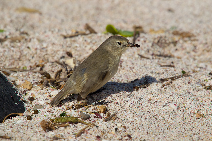 | The Warbler Finch on the right has a food item in its bill. This shot was taken on Hood Island in August, 2010, with a Canon EOS 1D Mark IV and a Sigma 50-500mm lens. | ![]() |