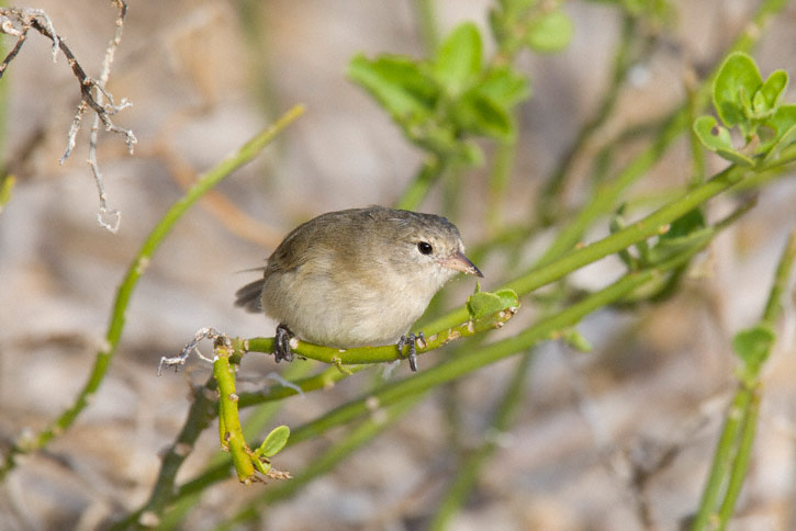 The Warbler Finch (Phalaropus tricolor) is one of the famous "Darwin Finches" of the Galapagos Islands of Ecuador. It is the smallest of these finches and has a more slender bill than the others. The first 5 shots on this page are of various individual Warbler Finches on Hood Island in the Galapagos in July, 2007. I have been told that the population of this species on Hood may in fact be declared a new and distinct species at some point in time. These shots were taken with a Canon EOS 1D Mark III and EF 100-400mm F/4.5-5.6 L IS lens. Darwin's finches (also known as the Galápagos Finches or as Geospizinae) are a group of 15 species of Passerine birds, now placed in the tanager family rather than the true finch family. They were first collected by Charles Darwin on the Galápagos Islands during the second voyage of the Beagle. Thirteen are found on the Galápagos Islands and one on Cocos Island. The birds are all about the same size (10–20 cm). The most important differences between species are in the size and shape of their beaks, and the beaks are highly adapted to different food sources. |