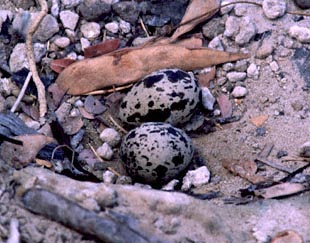| This photo of a Water Dikkop nest with two eggs was taken at the same time and place as the above shot. The nest was within two meters of the river's edge on the bank. | ![]() |