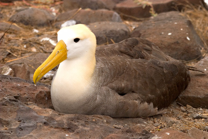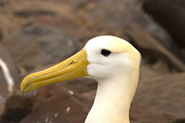 | This close-up of the head of a Waved Albatross shows the detail of its massive bill. |