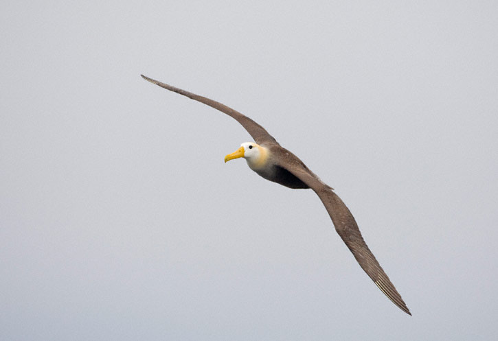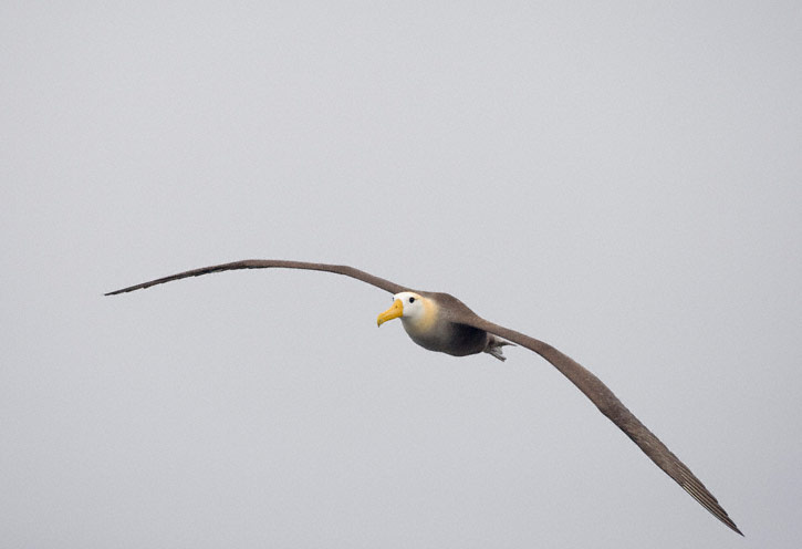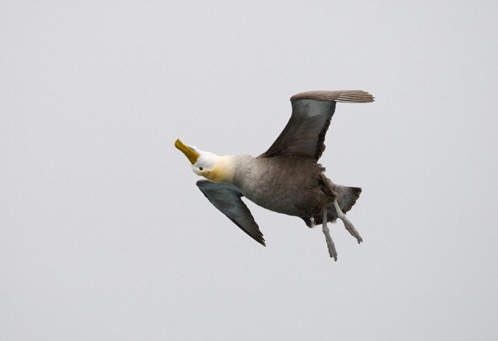 | The Waved Albatross in flight in this shot was on Hood Island in the Galapagos in August, 2010. This shot was taken with a Canon EOS 1D Mark IV and a Sigma 50-500mm lens. |