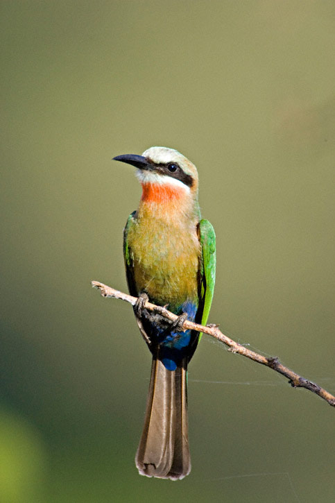 | The photographs below illustrate the different throat colors this species can display. The bird shown here is in typical plumage, however, the bird on the right shows a yellow throat. Out of approximately fifteen White-fronted Bee-Eaters in the immediate vicinity, two individuals displayed yellow throats. |
