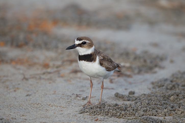 | The next 6 images of Wilson's Plover show a male on South Padre Island, Cameron Co., Texas, in May, 2010. These shots were taken with a Canon EOS 1D Mark IV and an EF 800mm F/5.6 L IS lens and 1.4X extender. | ![]() |