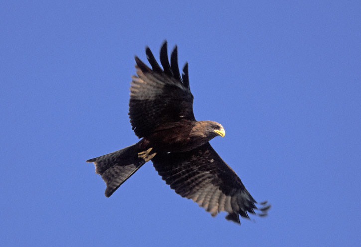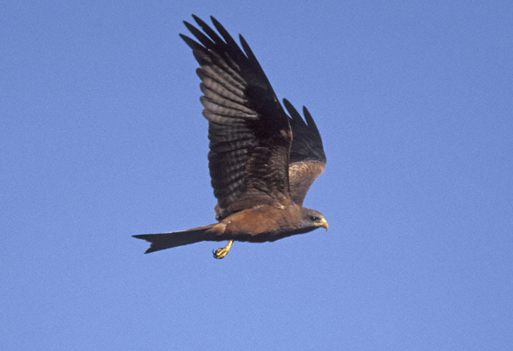 The Yellow-billed Kite (Milvus aegyptius) is a common raptor of southern Africa. The images here were taken in October, 1998, at Shakawe, Okavango River, Botswana, Africa. These were shot with a Canon EOS 1N and EF 300 mm F/4 L IS lens and 1.4X extender on Fuji Sensia film. | ![]() |