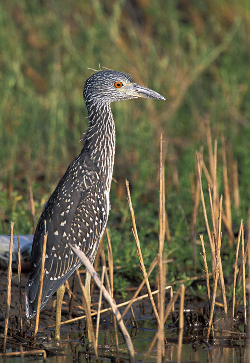 | To the right is a shot of an immature Yellow-crowned Night-Heron at Galveston, Galveston Co., Texas, in September, 1999. This shot was taken with a Canon EOS 1N and EF 300mm F/2.8 L lens and 2X extender on Fuji Sensia. |