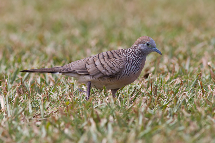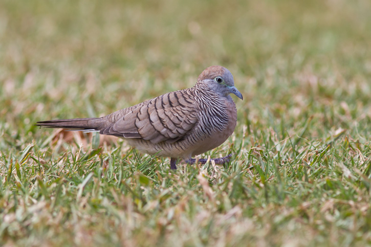 | The Zebra Dove (Geopelia striata), also called Barred Dove, is native to Australia. It was introduced to Hawaii in the 1920s and is now one of the most common lowland birds on the Hawaiian islands. The images on this page were taken in August, 2012 in Honolulu, Oahu, Hawaii, in August, 2012. | ![]() |